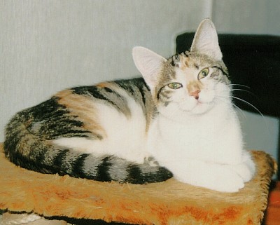 Innenhof passiert. Das Bild links unten zeigt sie auf dem Kratzbaum,