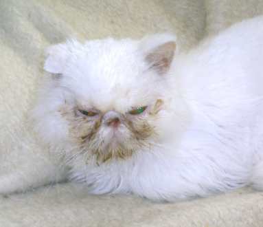 Johannes Anfang März 2004: (Das Gesichtchen wird schmutzig bleiben, da er auch Nassfutter bekommen soll. Es stört ihn selbst jedenfalls nicht.)